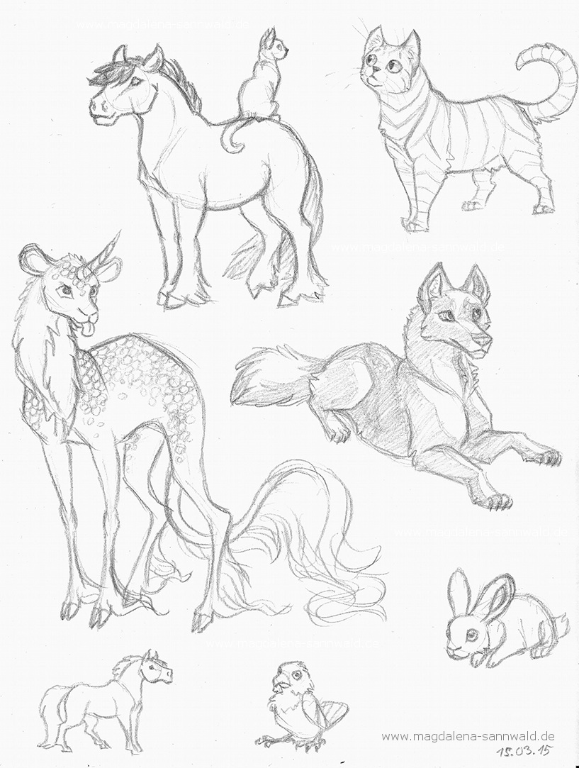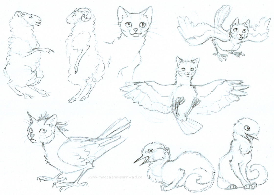 Skizzenblatt: Vogelkatzen - Katzenvögel